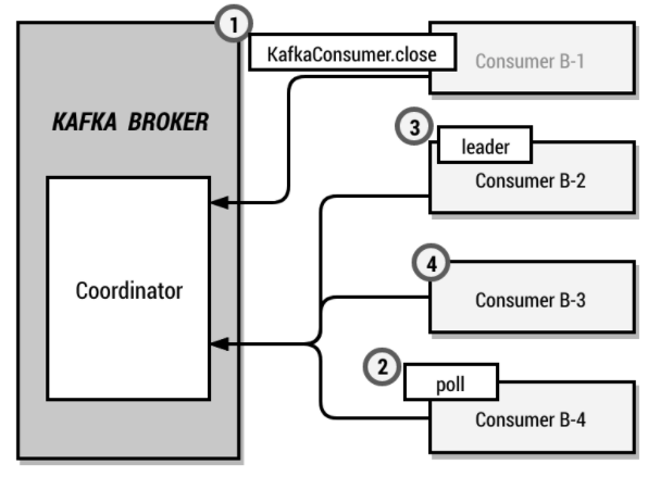 - KafkaConsumer.close 가 호출되어 코디네이터에게 consumer 가 종료 되는 것을 알렸을 때.